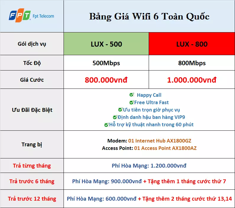 - Gói Lux 800: 01 Internet Hub AX1800GZ